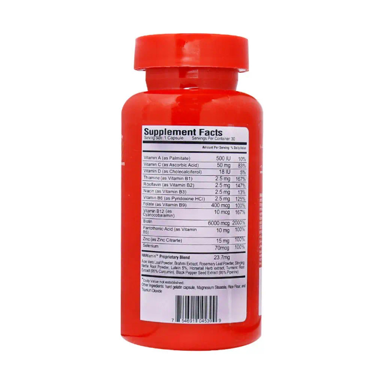 - ویتامینهای گروه B: اثرات بسیار مثبتی بر حفظ سلامت پوست، مو و ناخن دارند. هیرتامین دارای B1، B2، B3، B5، B6، B7، B9 است که نقش بسیار مهمی در کاهش و جلوگیری از ریزش مو دارند.